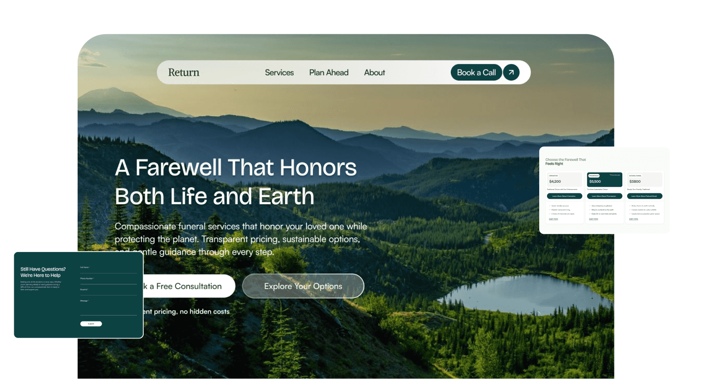 Funeral planning happens during grief, when cognitive load is at its highest and unfamiliar options feel risky. This project explores how a landing page can educate without overwhelming, and convert without pressure.